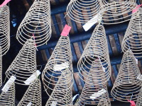 天井から吊るされたうずまき線香の煙と香りがあたり一面に漂い、寺院らしい雰囲気を醸し出し参拝者は皆さん熱心に祈りをささげていました。