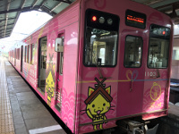 ローカル電車はとても可愛らしいピンクの縁結び列車が走っていて偶然その縁結び列車に往復乗る事が出来ました。