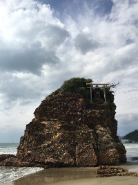 稲佐の浜は小さな海岸ですがたどり着くと大きな弁天岩が目の前にありました!